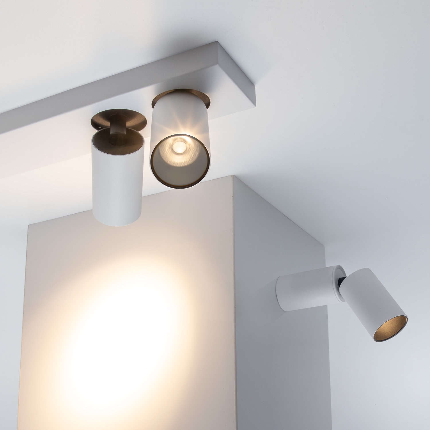 Spot pentru montaj aplicat, orientabil de interior, echipat cu LED COB, temperatură de culoare alb cald.