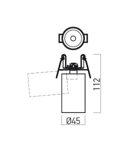 Corpul din profil de aluminiu extrudat, vopsit în câmp electrostatic, culoare alb mat. Placă și sistem de încastrare din tablă profilată de aluminiu, vopsite în câmp electrostatic, culoare negru mat. Inel decorativ din aluminiu turnat vopsit electrostatic negru mat.