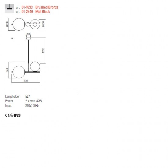Suspensie Redo TALIS 2X42W E27 Black, 01-2646