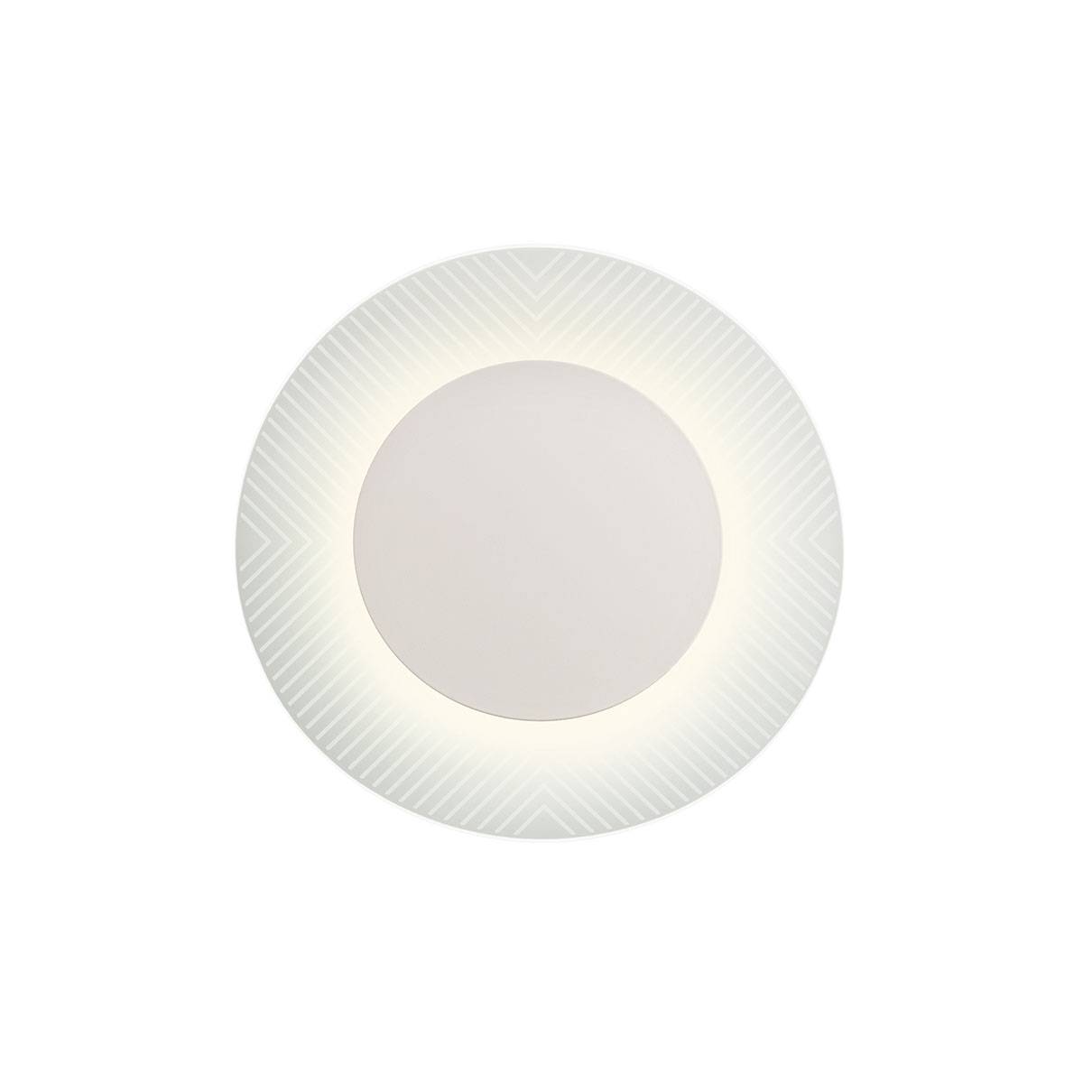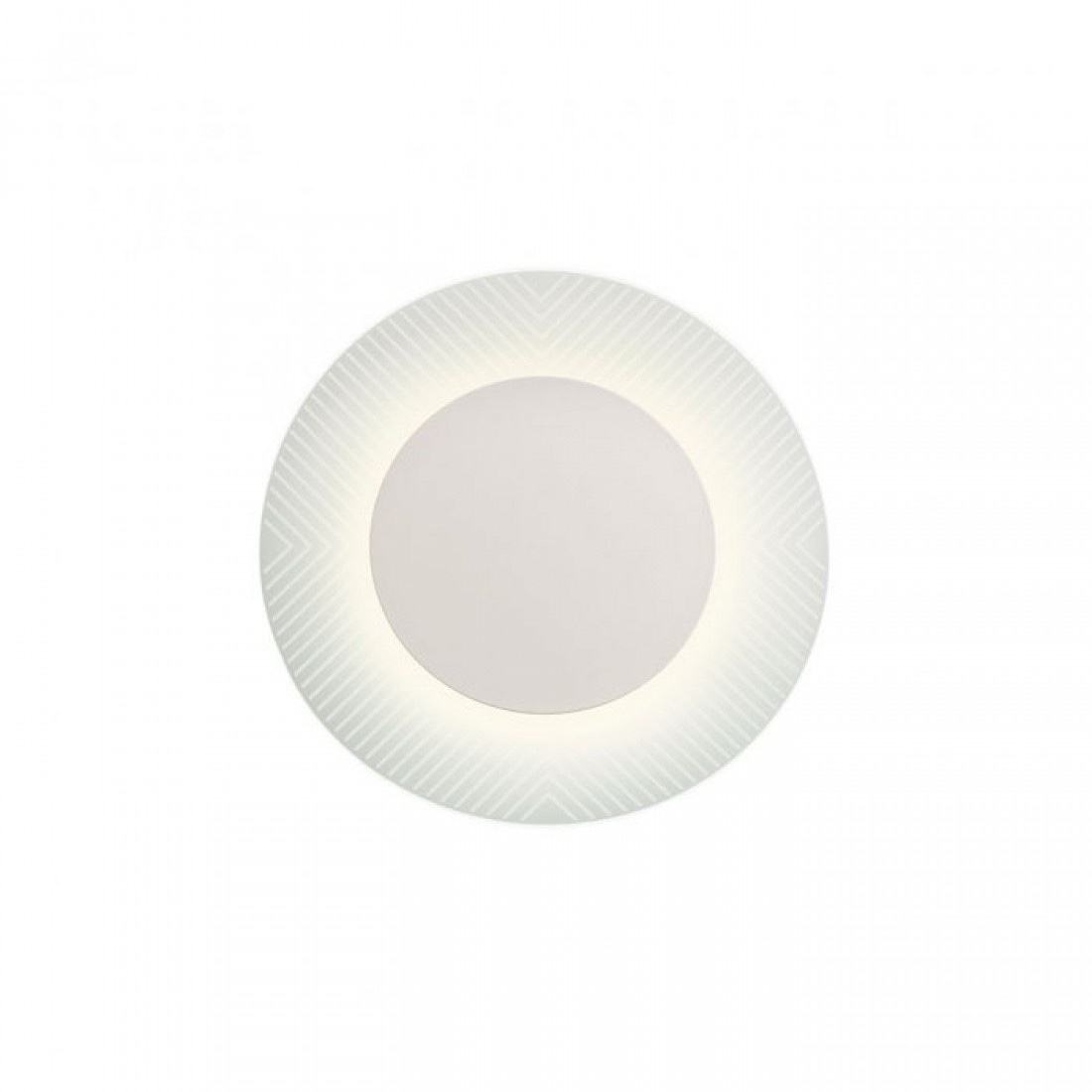 Aplică moderna pentru interior, cu dispersie indirectă a luminii, cu structură din metal, vopsită alb mat, dispersor din PMMA transparent cu serigrafie.