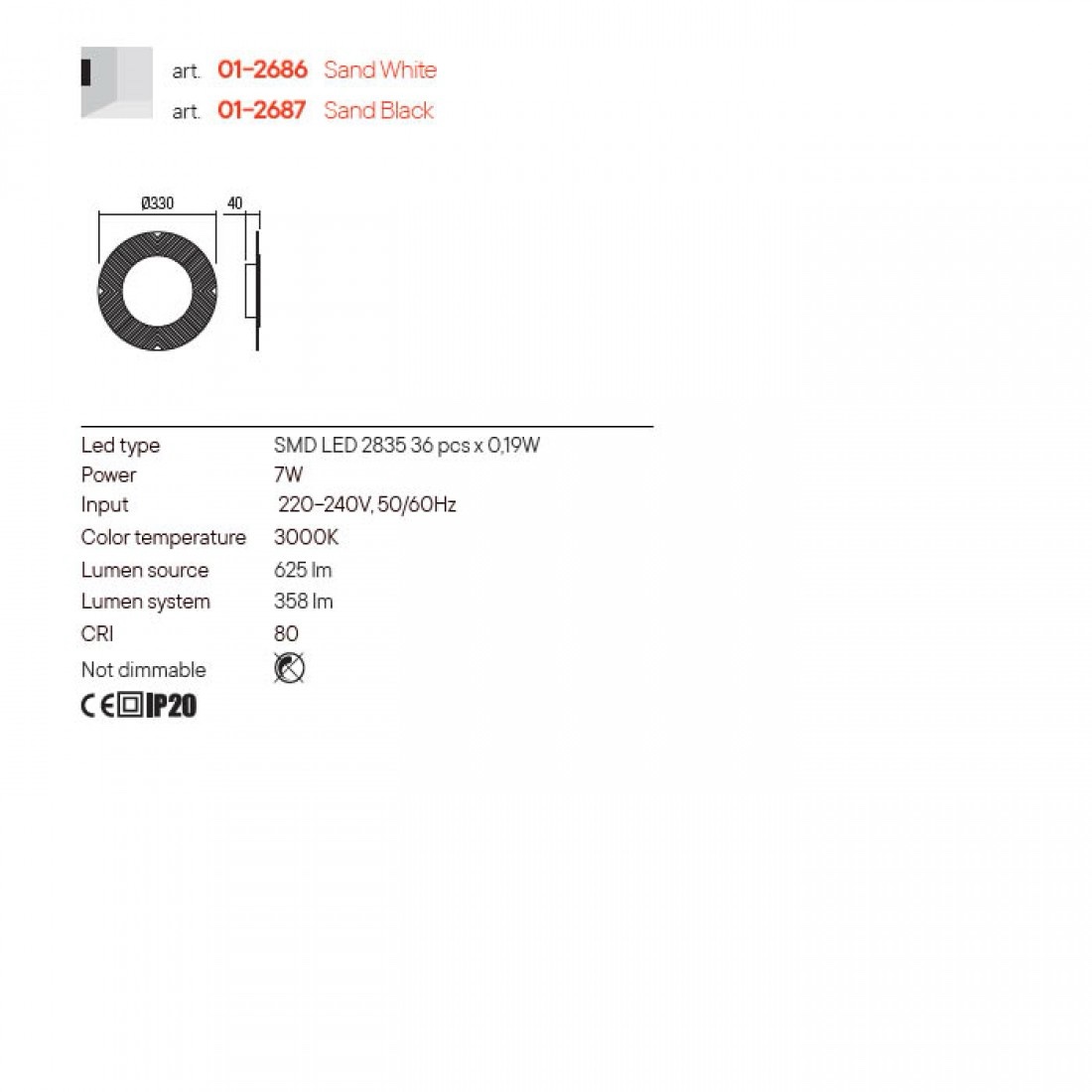 TATOO APLICĂ/PLAFONIERA LED 7W 3000K ALBA, D. 33cm, REDO, 01-2686