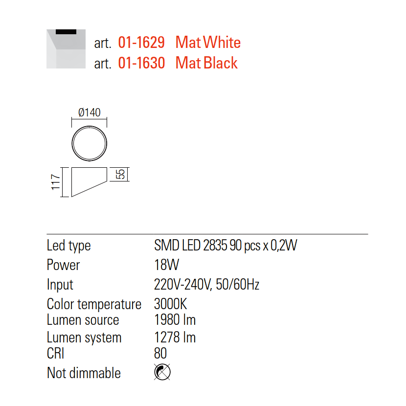 UTO PLAFONARA LED 18W 1980 LM SAND BLACK, 01-1630