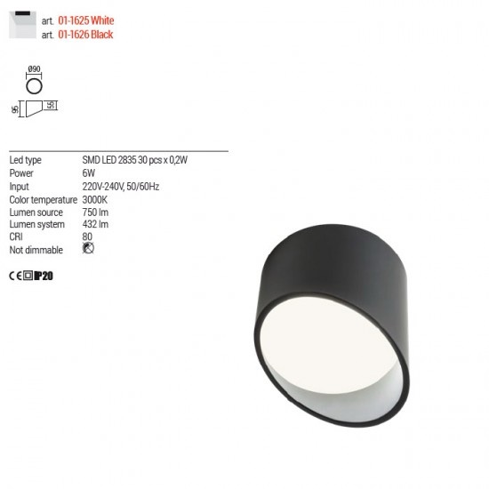 UTO PLAFONIERA LED 6W IP20 NEGRU MAT, 01-1626