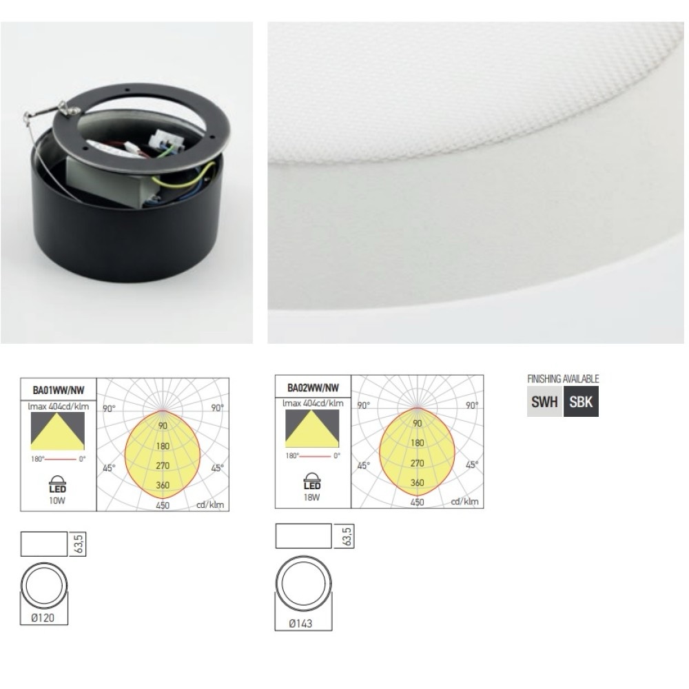 XBOARD Plafoniera LED 10W 4000K 1050Lm alb D.12cm CRI90, BA01NW SWH