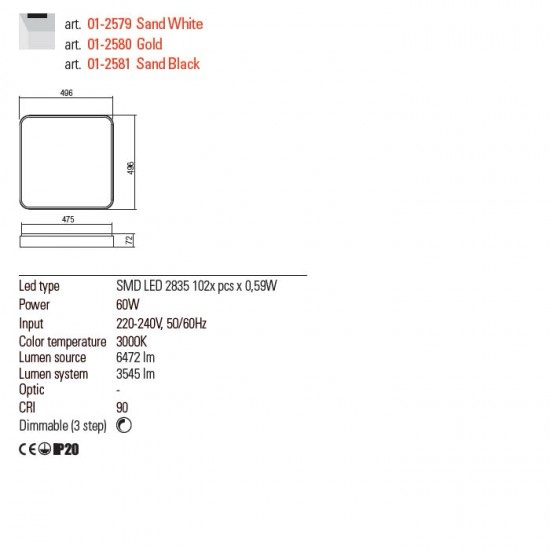 YOMO PLAFONIERA REDO LED 61W 3000K AURIU MAT, 496X496, 01-2580